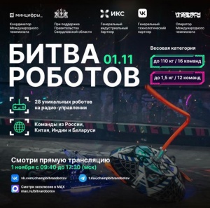 "Битва роботов» - это спортивнотехнический чемпионат, на котором инженерные команды соревнуются в проектировании и сражении своих роботов. Соревнования проходят на специализированном высокотехнологичном ринге, где созданные командами роботы наносят ...