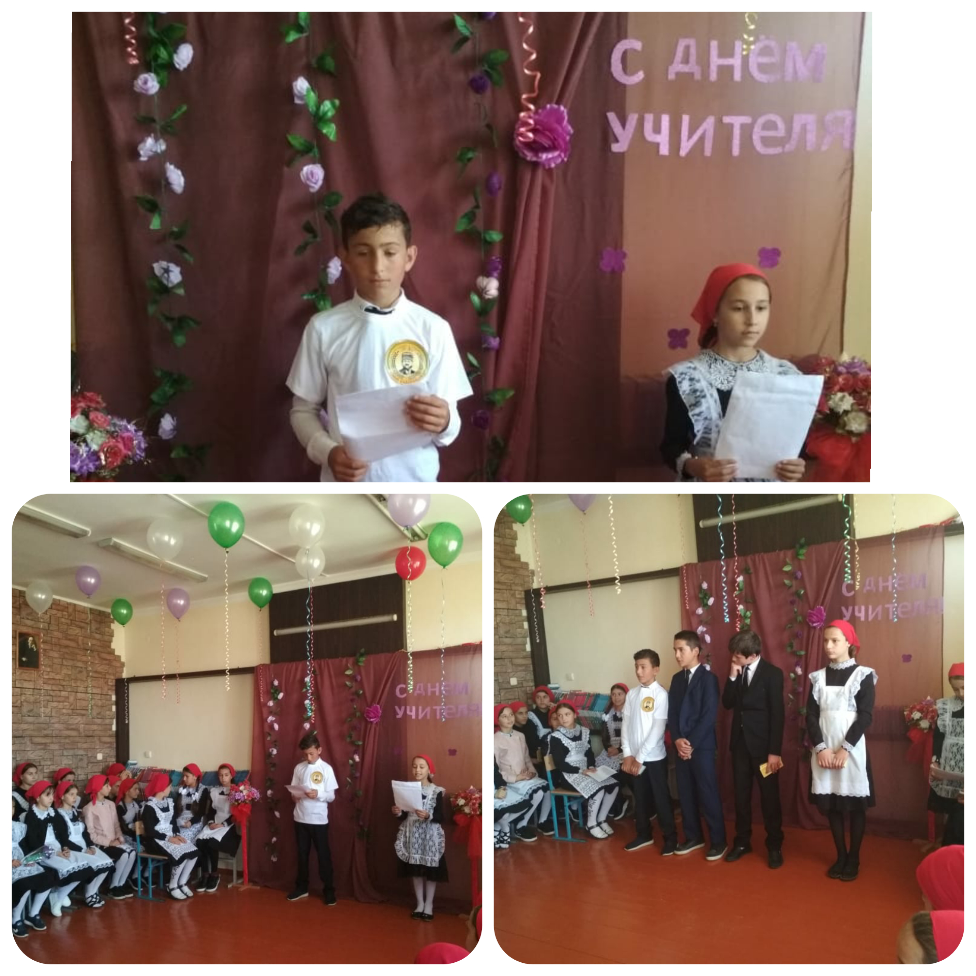 Словами благодарности, уважения, признательности и пышными букетами ярких осенних цветов был отмечен труд учителей. Для них звучали песни, стихотворения о школе и учителях.Учителя и ученики получили большой эмоциональный заряд и огромное удовольствие от проведённого мероприятия.