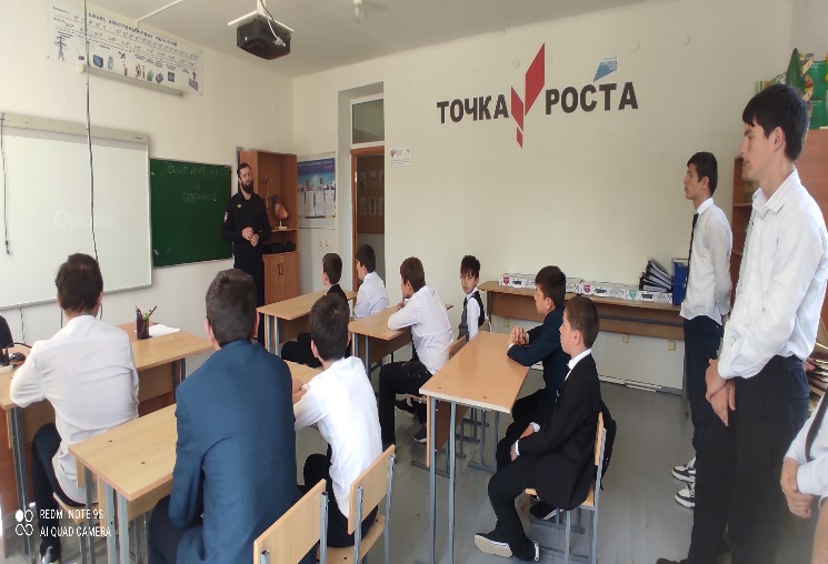 22.04.202422.04.2024г.в МБОУ «ООШ с.Новый-Замай-Юрт» инспектором ПДН ОУУП и ПДН ОМВД России по Ножай-Юртовскому району ЧР младшим лейтенантом полиции Байхаджиевым Т.З. проводилась профилактическая беседа с учащимися 5-9 классов на тему «Вовлечение несовершеннолетних в деструктивную, в том числе экстремистскую деятельность».Охват 30 обучающихся.