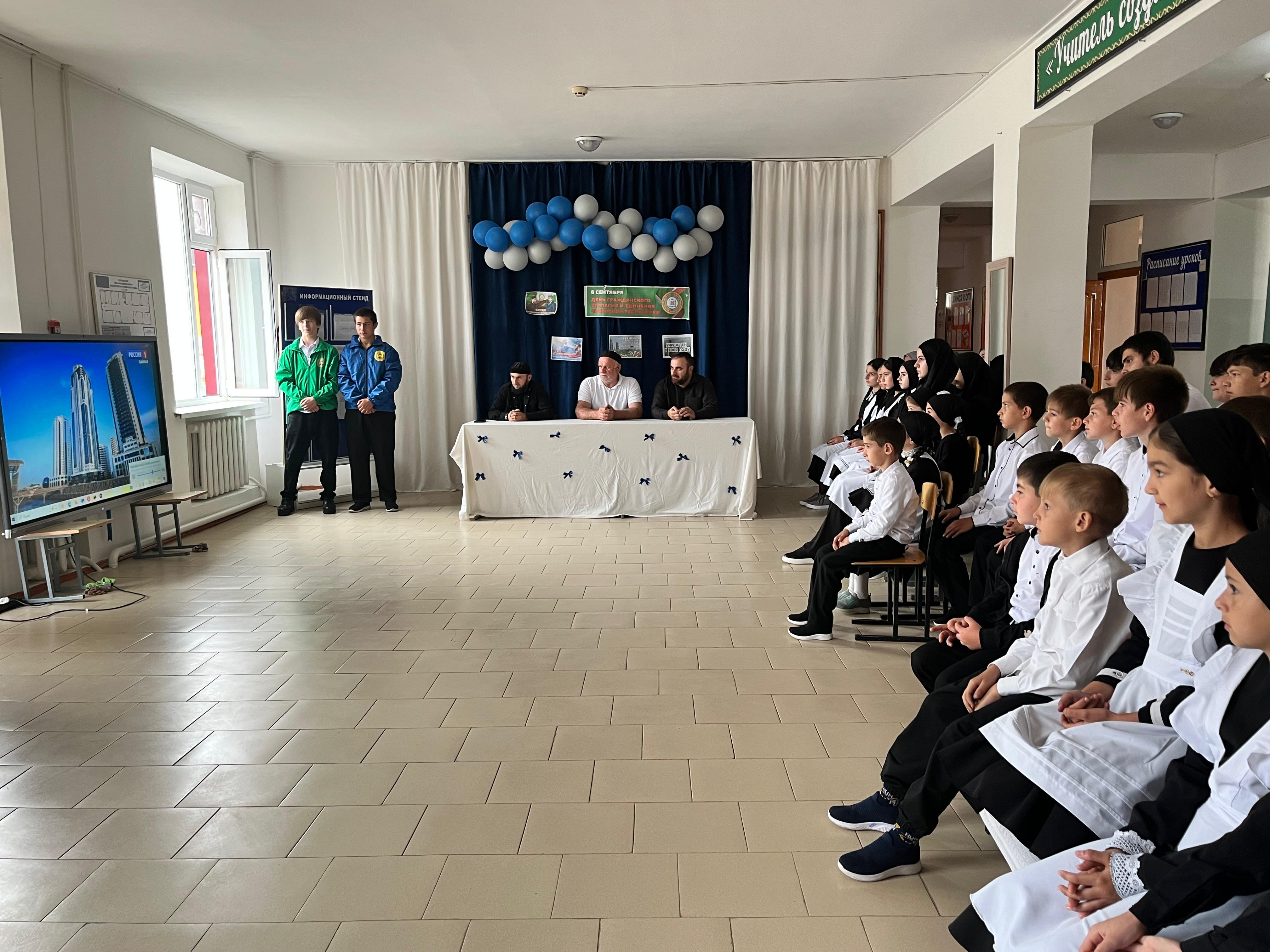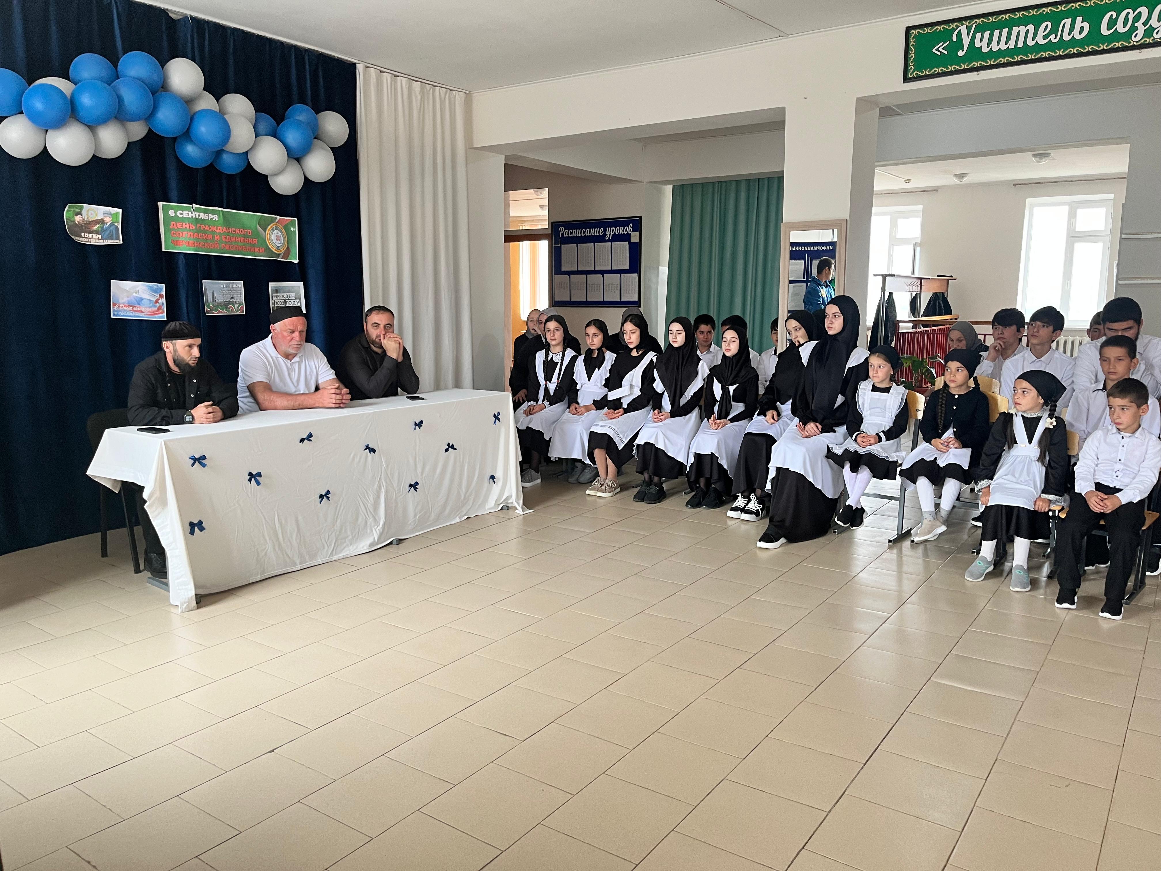 8 сентября в МБОУ "ООШ с.Новый-Замай-Юрт" провели мероприятие,посвященное на тему: "День Чеченской Республики" (День гражданского согласия и единения). На данное мероприятие был приглашен имам села Мудушов И.У-А.
